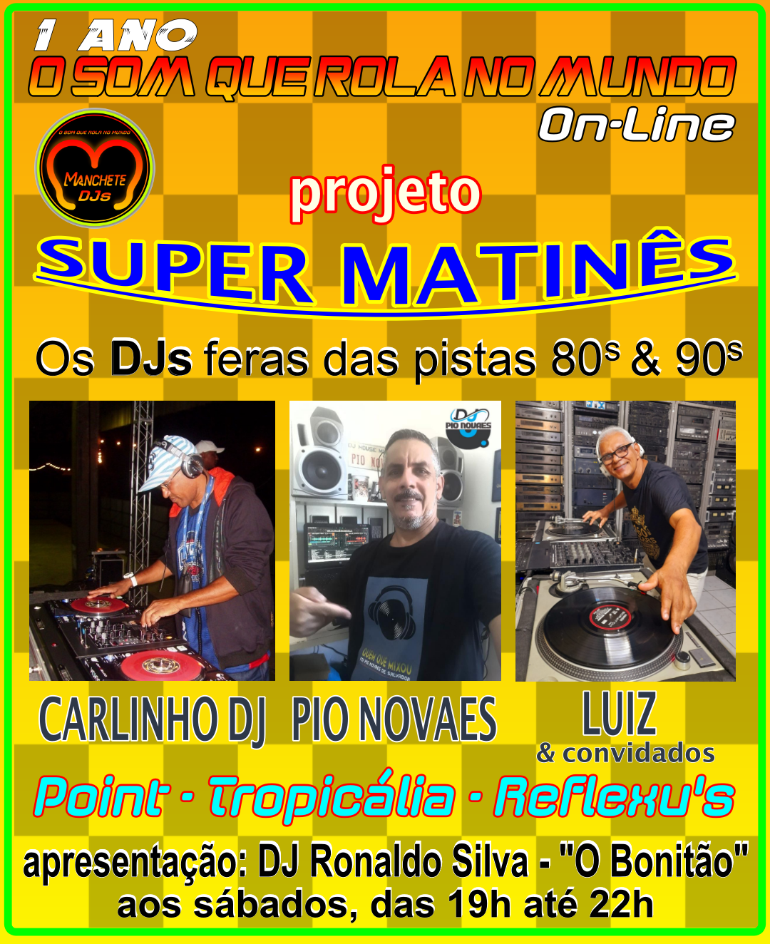 Prestigiando nosso amigo Dj Pio Novaes de 20 às 21h aos sábados no Projeto Super Matinês!